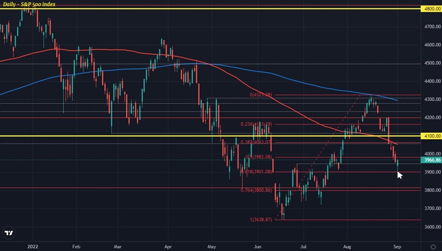 Wall Street staged quite a comeback yesterday as the S&P 500 and Nasdaq reversed heavy losses with the former even closing in positive territory on the day. It wasn't much (+0.3%) but at this point, investors will take what they can get. The rebound also comes as the index neared a test of its 61.8 Fib retracement level at 3,901 yesterday: