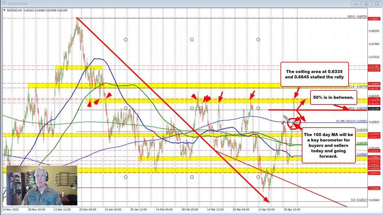 The AUDUSD moved sharply higher after the US jobs report. The price rises took the pair above the 100 day MA at 0.6580, the 50% of the move down from the December high at 0.66159 and up to the a key swing area ceiling between 0.6335 and 0.6345. Sellers leaned against that ceiling and have pushed the price back to the downside.
