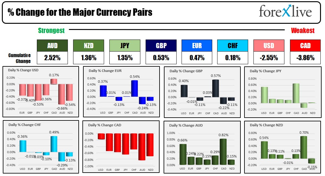 The AUD is the strongest and the CAD is the weakest as the NA session begins. The AUD moved higher after the RBA raised rates by the expected 25 basis points with the statement saying: