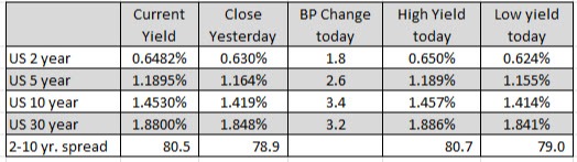 In Europe, the benchmark 10 year yields are hall higher with UK yields up the most by 5.5 basis points. France yields are also back above 0.0% at 0.027%.