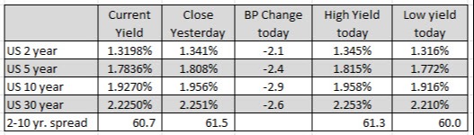 In the European debt market, the benchmark 10 year yields are all lower as well.
